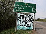 In the Brecon Beacons, police stopped people who had driven from Birmingham and Hereford. Pictured, a message warning tourists away is seen at Snowdonia