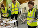 Sophie, 55, chatted with staff and other volunteers and donned protective gloves to sort food products into boxes at The Lighthouse Foodbank in Woking, Surrey, during a visit at the end of last month.