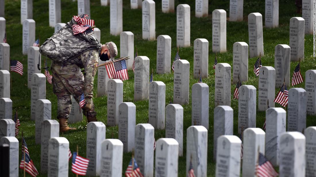 Solemn rituals remain but with new precautions at Arlington National Cemetery this Memorial Day