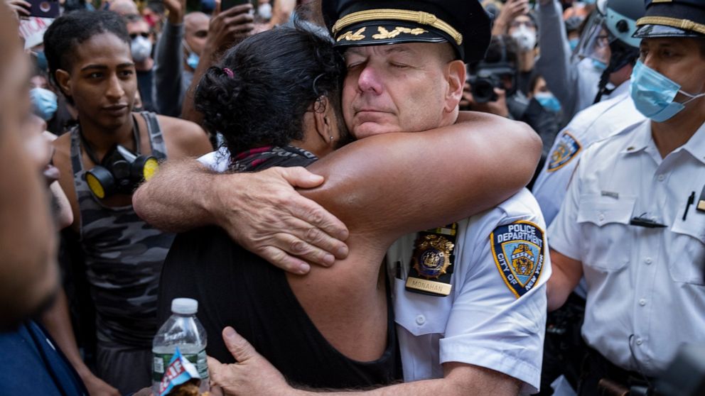 On Sunday, some New York City police officers knelt with protesters. But officers have also clashed with demonstrators.