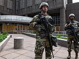 National Guard troops outside the Hennepin County Courthouse in Minneapolis on Thursday while the three officers’ hearing took place inside