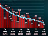 There were also no new cases in York, Dorset, North Lincolnshire, Torbay in Devon, Halton in Cheshire and Rutland in the East Midlands. Two thirds of council areas in England are now seeing an average of one case a day or fewer, according to the PHE data.