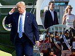 Birthday boy Donald Trump flies back to Washington after weekend at his Bedminster golf course – and is greeted by fresh wave of protests outside the White House