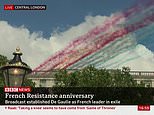 The Red Arrows and their French counterparts, La Patrouille de France fly over Buckingham Palace and central London to mark 80 years since Charles De Gaulle’s historic speech to Occupied France