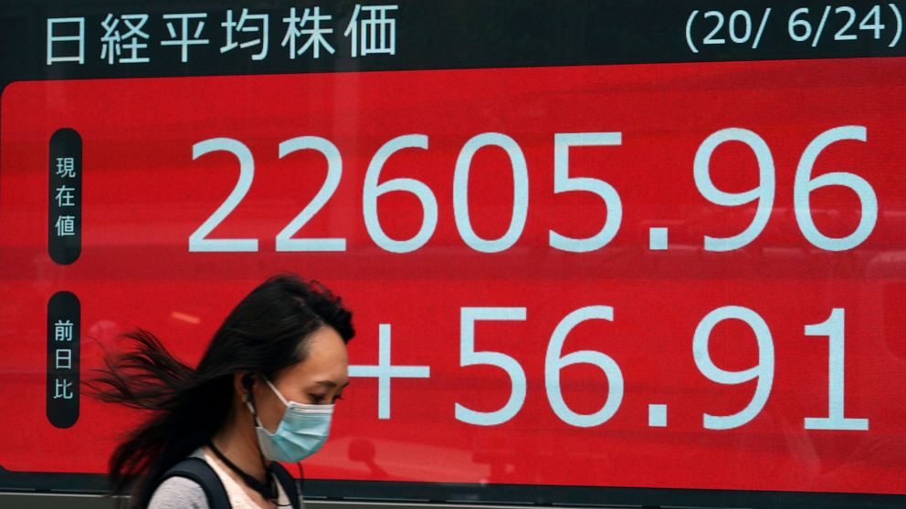 TOKYO — Stocks are down sharply on Wall Street as data showing new coronavirus cases in the U.S. have climbed to the highest level in two months rattles investors’ optimism for a relatively quick economic turnaround.