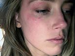 Amber Heard showing bruises she claims were inflicted by Johnny Depp as he allegedly smashed her iPhone in her face at her LA home in May 2016, a month after Heard allegedly ‘defecated’ in their marital bed on her 30th birthday