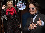 Johnny Depp (left, outside the High Court this morning) is suing The Sun’s publisher over an April 2018 article which alleged he was violent towards ex-wife Amber Heard (right, at the court also today) during their tumultuous relationship.