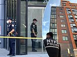 NYPD crime scene detectives are pictures on scene, outside the apartment block