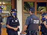 The closures affects many tourist businesses as well as pubs and bars. Above: police are seen closing speaking with a woman as they enforce the closure