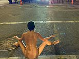 Surreal video footage from the scene shows the woman striding towards the officers, who were in heavy protective gear including gas masks and helmets, almost completely naked.