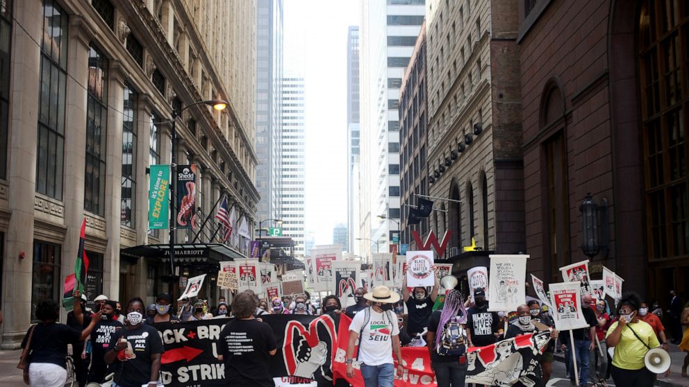 Organizers said at least 20,000 workers in 160 cities walked off the job, inspired by the racial reckoning that followed the deaths of several Black men and women at the hands of police. Visible support came largely in protests that drew people whose jobs in health care, transportation and construction do not allow them to work from home during the coronavirus pandemic.