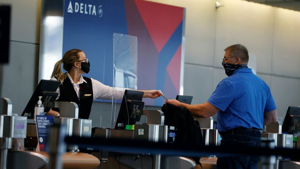 Major U.S. airlines have extended their face-mask rules to ticket counters, baggage claim and other areas inside airports, and they threaten to ban violators from future flights. Ed Bastian, CEO of Delta, said his company has taken action against more than 100 passengers.