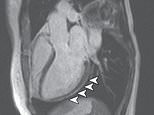 Arrows point out areas of the hearts of coronavirus survivors that became thicker and inflamed after infection. The study found blood markers in these survivors typically only seen after someone sufferers