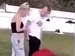 A one point in the video the teenager (pictured middle) appears to hit the young man (pictured right) on the head