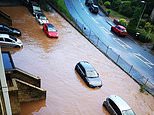 Cars sit in floodwater in Perth, Scotland, this morning following thunderstorms and heavy rain overnight in parts of Britain