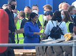 Pictured: A group of people thought to be migrants are brought into Dover, Kent, by Border Force officers following a number of small boat incidents in the Channel, August 15, 2020. New figures show that more than 1,000 migrants crossed to the UK in just ten days this month