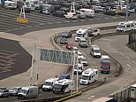 Vehicles are driven off of a ferry at Dover after arriving from France as travellers trying to return from France on Friday to avoid the quarantine restrictions face a scramble for tickets costing hundreds of pounds