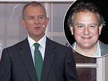 Unrecognisable: Hugh took to the balcony in a black suit and straight green tie as he read out King George VI’s speech to mark the occasion (left, and in 2014, right)