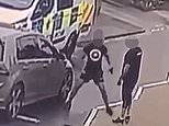 He was filmed throwing the man, wearing black cycling shorts, into the back of a van as he pleaded: ‘Look. What have I done?’