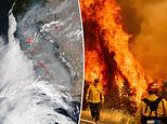 Shocking satellite images captured by NASA show a dense fog of smoke covering the entirety of California, making it nearly invisible from space as lightning strikes, storms, and a heatwave have caused over 650 wildfires to erupt across the state