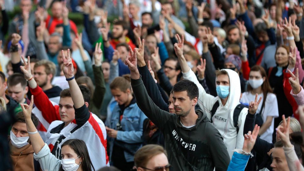 In the first four days of demonstrations that followed, Belarus security forces detained almost 7,000 people and injured hundreds with rubber bullets, stun grenades and clubs. At least three protesters died. Around 180 people were detained at rallies on Thursday.