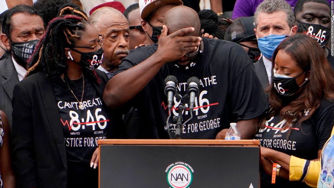 ‘);if (Modernizr && !Modernizr.phone) {$owlFirstItem.find(‘.media__icon’).hide();}}CNN.Videx.Metadata.init({dateCreated: videocardContents.dateCreated,descriptionText: videocardContents.descriptionText,duration: videocardContents.duration,sourceLink: videocardContents.sourceLink,sourceName: videocardContents.sourceName,title: videocardContents.headlineText},{videoCollectionDivId: ‘cn-wa6jj5’,videoDescriptionDivId: ‘js-video_description-wa6jj5’,videoDurationDivId: ‘js-video_duration-wa6jj5’,videoTitleDivId: ‘js-leaf-video_headline-wa6jj5’,videoSourceDivId: ‘js-video_sourceName-wa6jj5’});if (CNN.Utils.exists(videocardContents.showName)) {if (CNN.Utils.exists(videocardContents.showUrl)) {showDetailsSpanContent = ‘‘ + videocardContents.showName + ‘ | ‘;} else {showDetailsSpanContent = videocardContents.showName + ‘ | ‘;}}fastdom.measure(function getShowInfo() {var $show = jQuery(‘.metadata__show’),$isShowDetailsSpanExists = $show.find(‘span’).hasClass(‘metadata–show__name’),$showName = jQuery(‘.metadata–show__name’);fastdom.mutate(function updateShowInfo() {if (!$isShowDetailsSpanExists) {$show.prepend(‘‘ + showDetailsSpanContent + ‘‘);} else {$showName.html(showDetailsSpanContent);}});});if (typeof (history) !== ‘undefined’ && typeof (history.replaceState) !== ‘undefined’) {history.replaceState(”, ”, videocardContents.url);document.title = videocardContents.headlineText ? videocardContents.headlineText : ”;}}function getCurrentVideoCardContents(currentVideoId) {var containerContents = [{“branding”:””,”cardContents”:{“additionalSections”:[],”auxiliaryText”:””,”bannerText”:[],”bannerHasATag”:false,”bannerPosition”:””,”brandingLink”:””,”brandingImageUrl”:””,”brandingTextHead”:””,”brandingTextSub”:””,”cardSectionName”:””,”contentType”:””,”cta”:”share”,”descriptionText”:[“Philonise Floyd delivered an emotional tribute to his late-brother, George Floyd, and addressed the police shooting of Jacob Blake in Kenosha, Wisconsin, at the 2020 March on Washington event. “],”descriptionPlainText”:”Philonise Floyd delivered an emotional tribute to his late-brother, George Floyd, and addressed the police shooting of Jacob Blake in Kenosha, Wisconsin, at the 2020 March on Washington event.”,”headlinePostText”:””,”headlinePreText”:””,”headlineText”:”George Floyd’s brother gives emotional tribute to shooting victims”,”headlinePlainText”:”George Floyd’s brother gives emotional tribute to shooting victims”,”iconImageUrl”:””,”iconType”:”video”,”isMobileBannerText”:false,”kickerText”:””,”maximizedBannerSize”:[],”media”:{“contentType”:”image”,”type”:”element”,”cutFormat”:”16:9″,”elementContents”:{“caption”:”Philonise Floyd, brother of George Floyd, speaks at the Lincoln Memorial during the “Commitment March: Get Your Knee Off Our Necks” protest against racism and police brutality, on August 28, 2020, in Washington DC. – Anti-racism protesters marched on the streets of the US capital on Friday, after a white officer’s shooting of African American Jacob Blake. The protester also marked the 57th anniversary of civil rights leader Martin Luther King’s historic “I Have a Dream” speech delivered at the Lincoln Memorial. (Photo by Jacquelyn Martin / POOL / AFP) (Photo by JACQUELYN MARTIN/POOL/AFP via Getty Images)”,”imageAlt”:”Philonise Floyd, brother of George Floyd, speaks at the Lincoln Memorial during the “Commitment March: Get Your Knee Off Our Necks” protest against racism and police brutality, on August 28, 2020, in Washington DC. – Anti-racism protesters marched on the streets of the US capital on Friday, after a white officer’s shooting of African American Jacob Blake. The protester also marked the 57th anniversary of civil rights leader Martin Luther King’s historic “I Have a Dream” speech delivered at the Lincoln Memorial. (Photo by Jacquelyn Martin / POOL / AFP) (Photo by JACQUELYN MARTIN/POOL/AFP via Getty Images)”,”imageUrl”:”//cdn.cnn.com/cnnnext/dam/assets/200828135541-19-march-on-washington-2020-large-169.jpg”,”label”:””,”galleryTitle”:””,”head”:””,”source”:”Getty”,”photographer”:”Jacquelyn Martin/Pool/AFP via Getty Images”,”cuts”:{“mini”:{“width”:220,”type”:”jpg”,”uri”:”//cdn.cnn.com/cnnnext/dam/assets/200828135541-19-march-on-washington-2020-small-169.jpg”,”height”:124},”xsmall”:{“width”:307,”type”:”jpg”,”uri”:”//cdn.cnn.com/cnnnext/dam/assets/200828135541-19-march-on-washington-2020-medium-plus-169.jpg”,”height”:173},”small”:{“width”:460,”type”:”jpg”,”uri”:”//cdn.cnn.com/cnnnext/dam/assets/200828135541-19-march-on-washington-2020-large-169.jpg”,”height”:259},”medium”:{“width”:780,”type”:”jpg”,”uri”:”//cdn.cnn.com/cnnnext/dam/assets/200828135541-19-march-on-washington-2020-exlarge-169.jpg”,”height”:438},”large”:{“width”:1100,”type”:”jpg”,”uri”:”//cdn.cnn.com/cnnnext/dam/assets/200828135541-19-march-on-washington-2020-super-169.jpg”,”height”:619},”full16x9″:{“width”:1600,”type”:”jpg”,”uri”:”//cdn.cnn.com/cnnnext/dam/assets/200828135541-19-march-on-washington-2020-full-169.jpg”,”height”:900},”mini1x1″:{“width”:120,”type”:”jpg”,”uri”:”//cdn.cnn.com/cnnnext/dam/assets/200828135541-19-march-on-washington-2020-small-11.jpg”,”height”:120}},”responsiveImage”:true,”originalImageUrl”:”//cdn.cnn.com/cnnnext/dam/assets/200828135541-19-march-on-washington-2020.jpg”}},”noFollow”:false,”overMediaText”:””,”sectionUri”:””,”showSocialSharebar”:false,”shortUrl”:””,”statusText”:””,”statusColor”: