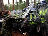 Revellers clash with riot police at the scene of the suspected illegal rave in Thetford Forest