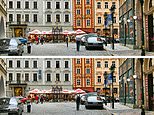 ‘More than 10!’ Twitter user Shari Odell triumphantly shared on Twitter, circling his finds. The two details he found that the CIA missed include a missing thin line of paint on the left side of the photo under one of the archways and a missing car logo on a vehicle on the left side of the road