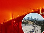 More people are leaving California than arriving, driven out by worsening wildfires, power outages, and the skyrocketing cost of living. Cars drive along the Golden Gate Bride under a haze of orange smoke in San Francisco on September 9