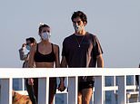 Locals wearing facemasks walk along the South Melbourne Beach on Monday. Lockdown restrictions in regional Victoria will be lifted from tomorrow