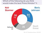 Sir Keir Starmer has drawn level with under-fire Prime Minister Boris Johnson on the eve of Labour’s first ‘virtual’ party conference as nearly 40 per cent of Britons say the opposition leader looks like the Conservative’s successor as premier.