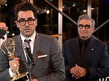 As Schitt’s Creek was created by Eugene and his son Daniel – who was next to win an award – he made sure to credit his child during his speech as he said: ‘That brings me to my multi Emmy nominated partner, Daniel Levy.