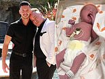 She’s here! Barrie, originally from Manchester but living in Florida, is engaged to his bisexual assistant Scott Hutchison (left), 25, who previously dated his 20-year-old daughter, Saffron, for several months. The couple will co-parent Valentina Willow