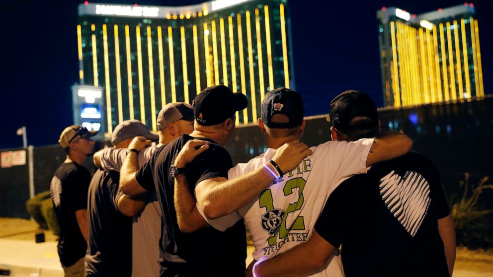 Authorities said more than 22,000 people were attending an outdoor music festival when a gunman firing military-style weapons from windows on the 32nd floor of the Mandalay Bay rained rapid-fire bullets into the crowd.