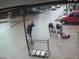 Horrifying moment mother tries to fight off crazed pitbull as it attacks her daughter, 7, on a Buenos Aires street