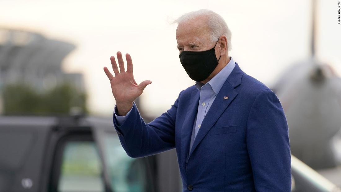 Wearing a mask and standing in front of an American flag in the parking lot of a union hall in Grand Rapids, the Democratic nominee said he and his wife, Jill Biden, send their “prayers for the health and safety” of Trump and first lady Melania Trump, who also tested positive.