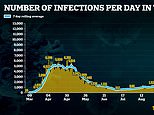 This marks a 12.5 per cent fall from the 9,600 infections thought to have been occurring every day the week before.
