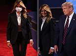 Melania was suffering lighter symptoms than the president, reporting a headache and cough. Pictured above wearing a mask on Tuesday in Cleveland, Ohio at the presidential debate