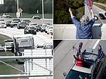 Supporters were also seen gathering on overpasses, waving American flags as the cavalcade drove by