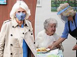 Camilla turns dinner lady! Duchess of Cornwall dons a mask and visor to serve lunch to the elderly and cuts up food for blind pensioner
