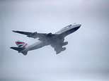 A British Airways Boeing 747 plane zooms over the top of houses before touching down at London’s Heathrow airport