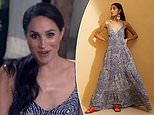 Meghan Markle opted for the maxi-dress, which features a blue and white swirling pattern, for the virtual meeting yesterday (pictured, the dress)