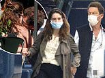 Masks: The duo were seen wearing face masks as they made their way through the terminal