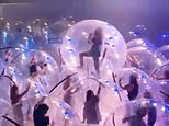 - Footage from the performance shows people inside 100 inflatable orbs