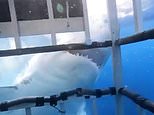 Terrifying moment a great white shark tries to bite through a cage with three female tourists inside