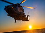 A French SAMU rescue helicopter lands close to a rescue vessel during the search operation