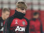 Manchester United has today vehemently denied allegations claiming Brandon Williams messaged a teenage girl. Pictured, Williams today ahead of Manchester United’s Champions League match at Old Trafford tonight