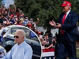 Front row seats: Trump’s rally saw fans packed together in close proximity while Biden’s crowd was dispersed with fans sitting on top of their vehicles