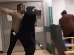 Shocking moment hospital worker kicks and punches patient as furious brawl breaks out in waiting room