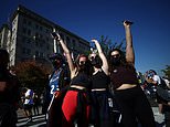 Meanwhile, Trump refused to accept the call, claiming Biden was trying to ‘falsely pose’ as the winner, vowing to keep challenging results he claims are a ‘fraud’ as his supporters rallied outside his Virginia golf course where he headed to earlier in the morning.